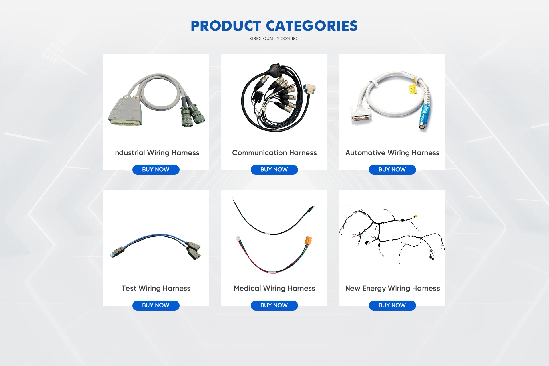 Productos principales:Arnés de cableado industrial, Arnés de cableado de comunicación, Arnés de prueba Wrie, Arnés de cableado médico, Arnés de cableado automotriz